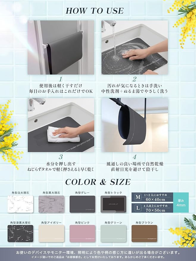 【快適なバスタイムをお約束】珪藻土バスマットです。お風呂上がりの足元を一瞬で快適に保つ驚異の吸水力!