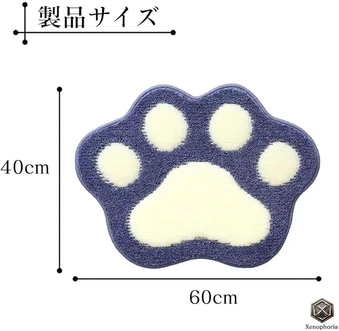 Xenophoria 玄関マット ブルー 肉球型 丸洗い可能 バスマット 足ふき 40x60cm お風呂 吸水速乾 グラデーション シャギー ふわふわ 室内 洗える あしふきマット