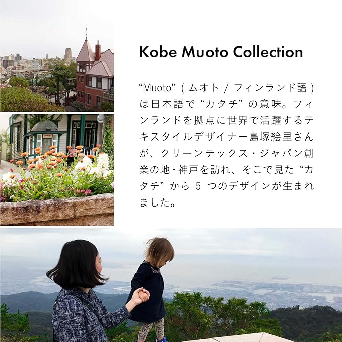 "Muoto"(ムオト/フィンランド語)は日本語で"カタチ"の意味。フィンランドを拠点に世界で活躍するテキスタイルデザイナー島塚絵里さんが、クリーンテックス・ジャパン創業の地・神戸を訪れ、そこで見た"カタチ"から生まれたデザインマットです。