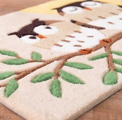 滑らかなアクリル糸を使用。表面は、足あたりがソフトで踏み心地もふかふか。思わず素足で歩きたくなるタッチ感です。柄の周りをカービングすることで動きのある表情に仕上げています。手洗いできるので汚れても安心。厚みは、約11mm。裏面は、滑り止め付きだからズレにくく安心です。