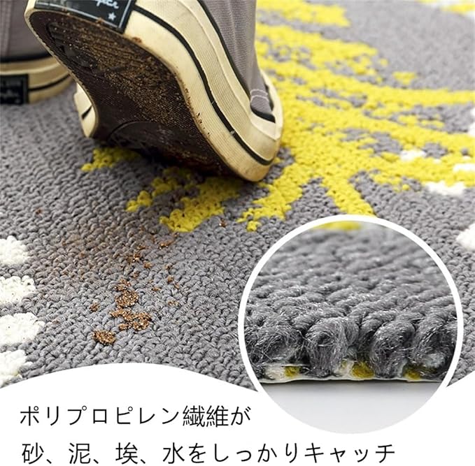 【清掃力が強い】表面に高密度繊維があるので、靴の底の砂を簡単にこすり落として、室内の床を汚さないようにします。屋内、屋外でお使いいただける泥落としマットです。玄関マットは軽量なので室内での使用をおすすめします。外部から靴についている水や泥などの汚れを取ることができます。長い梅雨の日でも大雪の日の中でもフロア汚れを最小限に抑えます。