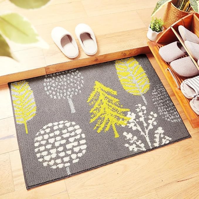 グレーの北欧デザイン 玄関マット 60x90cm 洗える 泥除けドアマット