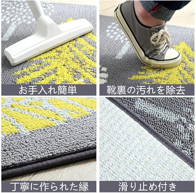 【高品質素材】表面:ポリプロピレン繊維、裏面:TPE滑り止めラテックス。玄関マットは高品質材料を使って、丈夫で、踏み心地もよし、耐磨耗性、耐久性、吸水性、色落ちなし、毛も落としにくいです。ドアマットの表地毛が短くて密度しっかりしています。サイドもロック加工で丁寧に仕上げています。寒い時期にヒンヤリことなく、夏にはさらさらで快適、一年中使える。玄関マット裏面にはTPE滑り止め加工されています。子供とお年寄りがいるの家庭でも安心してお使いいただけます。