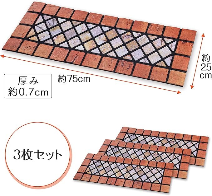 コモライフ 石タイル調の階段マット 3枚組【テラコッタタイプ】 階段用マット 階段 外階段 マット 屋外 玄関 水洗い 汚れ落とし 滑り止め ドア オシャレ サイズ:約縦25 横75 厚み0.7cm