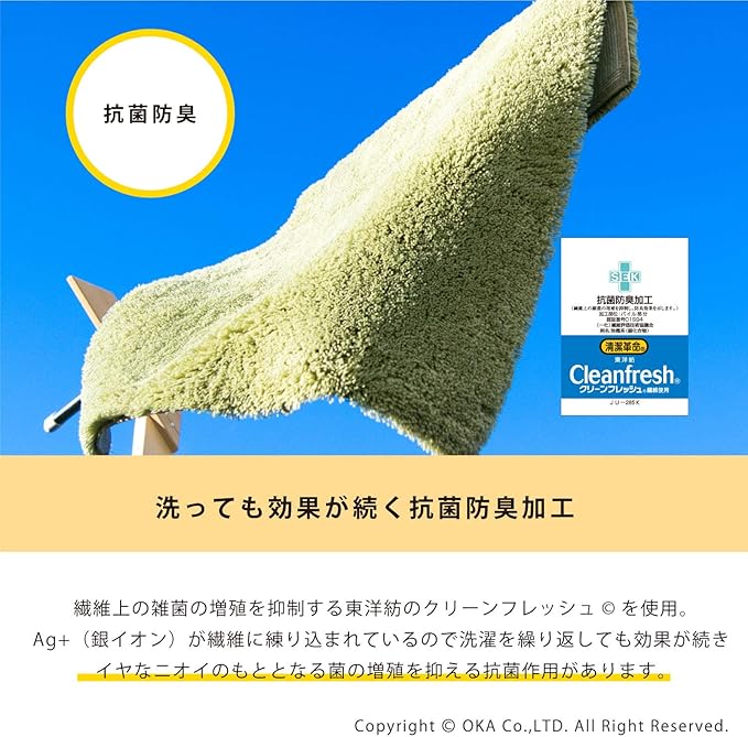 オカ株式会社が独自開発した特殊構造繊維「乾度良好(かんどりょうこう)」は25年を超えるロングセラーのバスマットです。