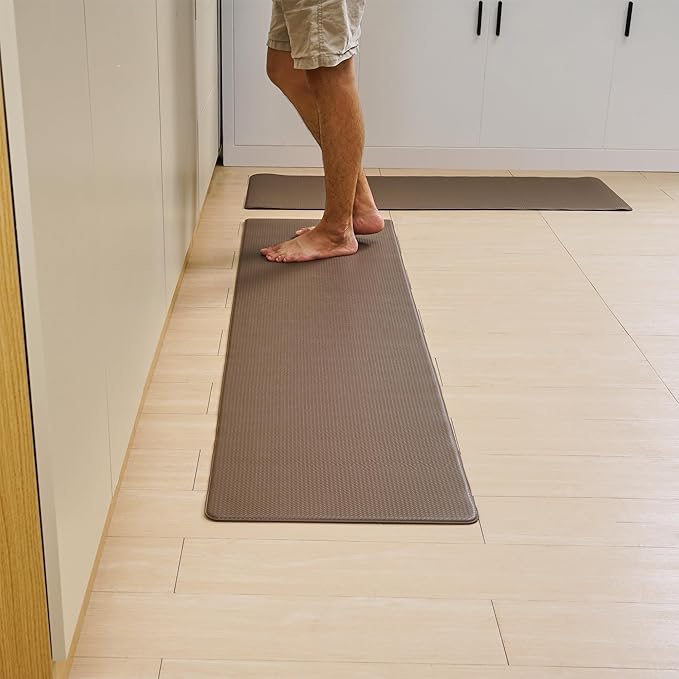 【柔らかい触り心地】VECELOのキッチンマットは足に優しい柔らかいPVC素材で、裸足で踏んでも快適です。足裏をしっかりと支えることで、リラックス効果も期待できます。環境に配慮したPVC素材を採用し、有害物質を含まず、安全でエコフレンドリーな設計です。