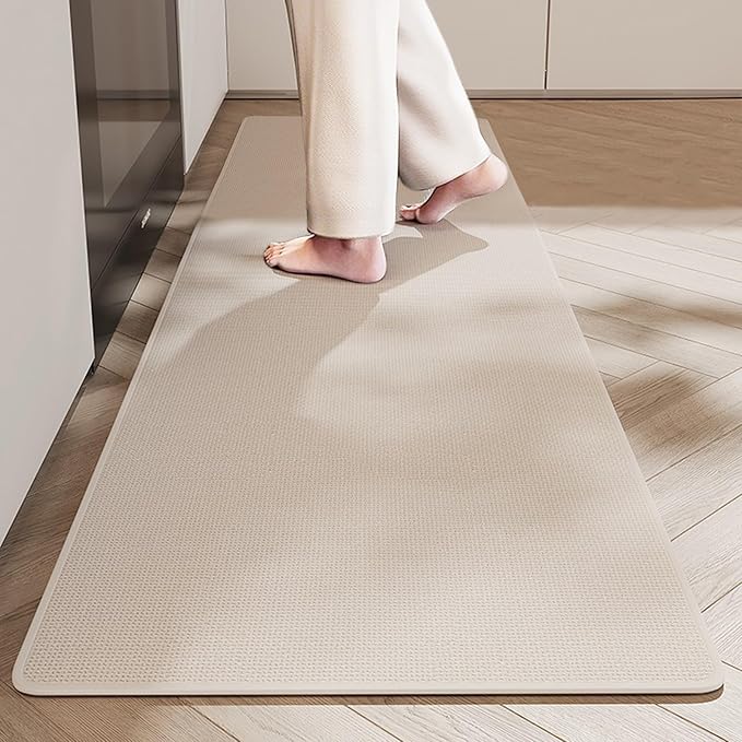 お風呂滑り止めマット 浴室足ふきマット 平織りラグマット 洗える 吸水 速乾 床マット ソフト玄関マット室内 キッチン (ベージュ, 45X120CM)
