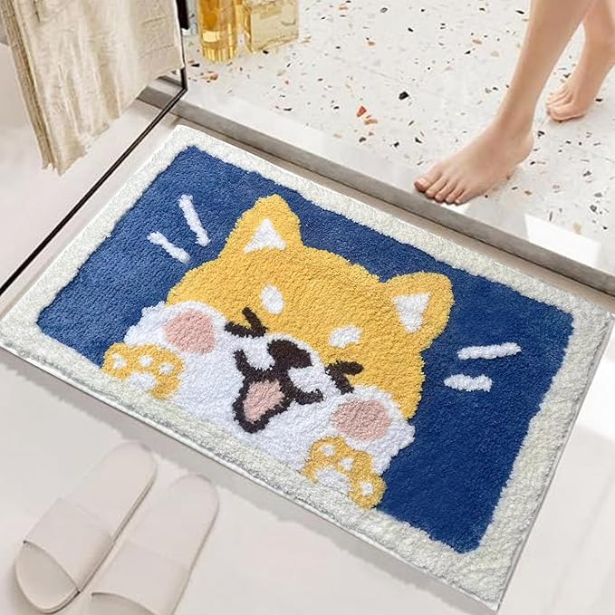 玄関マット お風呂マット かわいい 柴犬 おしゃれ 吸水 バスマット 速乾 犬 洗える 室内 柔らか ふわふわ 50*80cm 黄