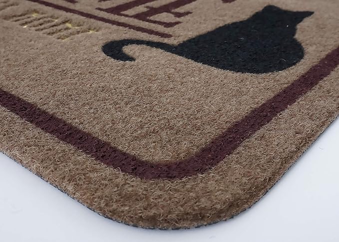 カキウチ 玄関マット ベージュ 縦45 横75cm エントランス マット ウェルカムキャット 猫 ドアマット