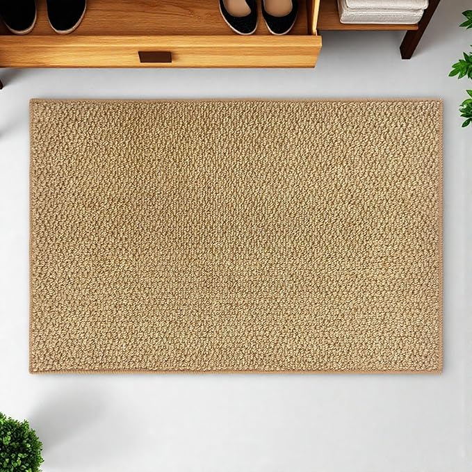 Pleadeliyループウール玄関マット 40 60cm お手入れ簡単ペット 引っ掻き防止マット抗菌滑り止め収納便利 玄関マット 室内 屋外用 店舗キッチン洗面所すべてに使える