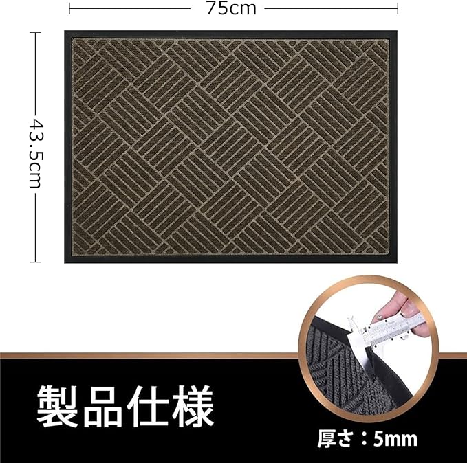 玄関マット 泥落としマット ドアマット 廊下マット 屋外 室内 滑り止め 業務用 家庭用 速乾 吸水 (43.5X75cm, ブラウン(菱形柄厚いタイプ))