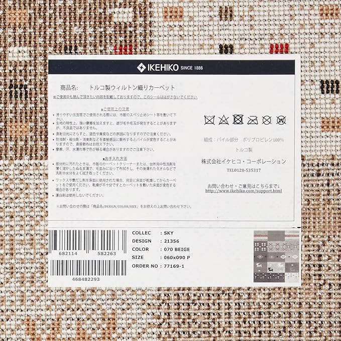 イケヒコ・コーポレーション ベージュ 約60 90cm トルコ製 ウィルトン織り 玄関マット ギャベ柄 フォリア