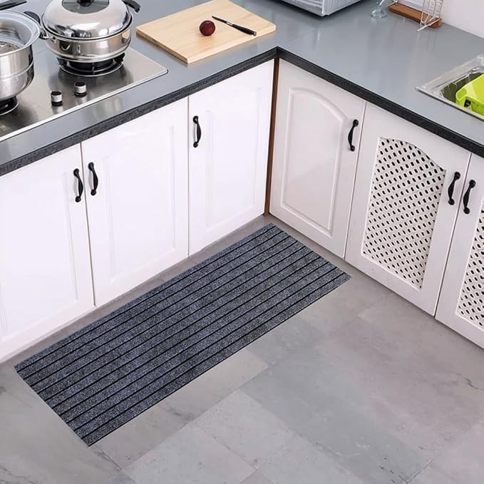 キッチンマット 玄関マット ストライプ ダークグレー (40 120)