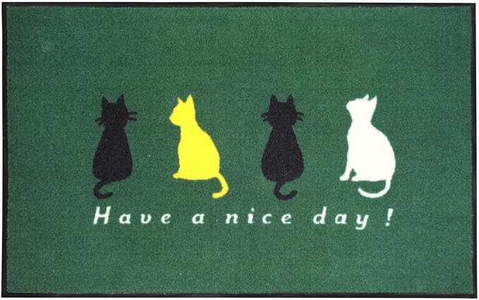 山崎産業 玄関マット 屋内 泥落とし マイホームスタイルマット フォーキャッツ 猫 ねこ ネコ 45 75cm #3 グリーン 日本製 198924
