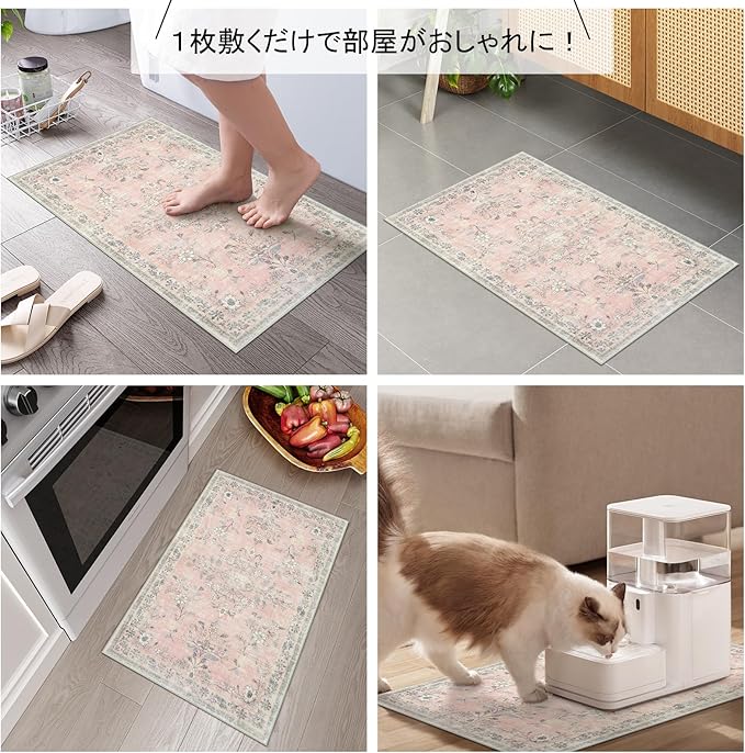 HAOCOO 玄関マット 室内 ペルシャ風 ラグマット 洗える 50х80cm 小さい おしゃれ 長方形 滑り止め 低反発 防音 屋外 泥落とし オールシーズン適用 耐磨耗性 軽量 花柄 コーラルピンク