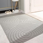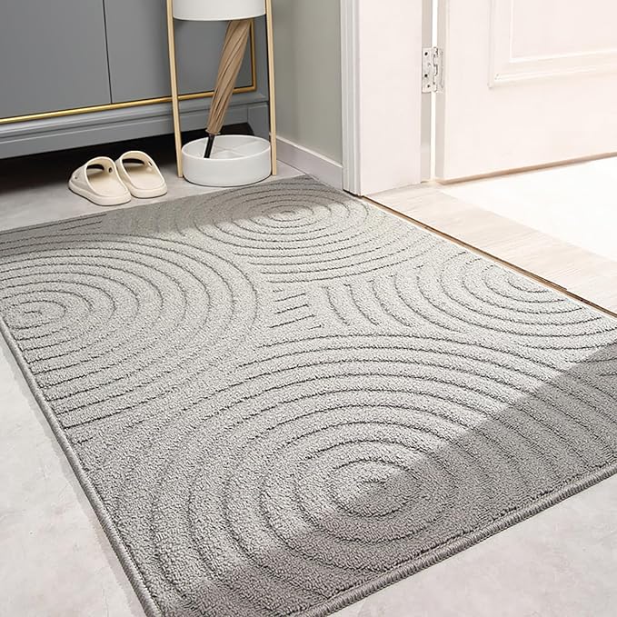 Sea Team 玄関マット ドアマット 滑り止め カーペットラグ 室内 屋外 フロアマット 床マット 家庭用 業務用 オフィス用 幾何学柄 北欧 ゴブラン織り 吸水 泥落とし (円形 グレー 50x80)