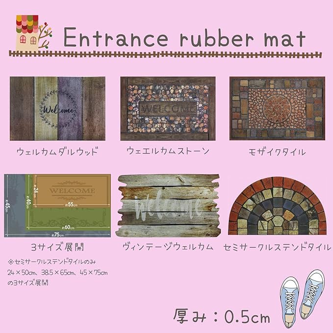 マットの厚さが約5mmの薄型タイプなのでドアの前に置いても引っ掛かりにくい。