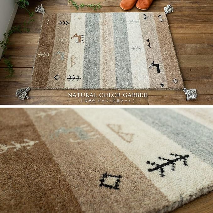 サヤンサヤン 手織り 玄関マット ボーダー 無染色 ギャベ ギャッベ HG921 60x90 ウール