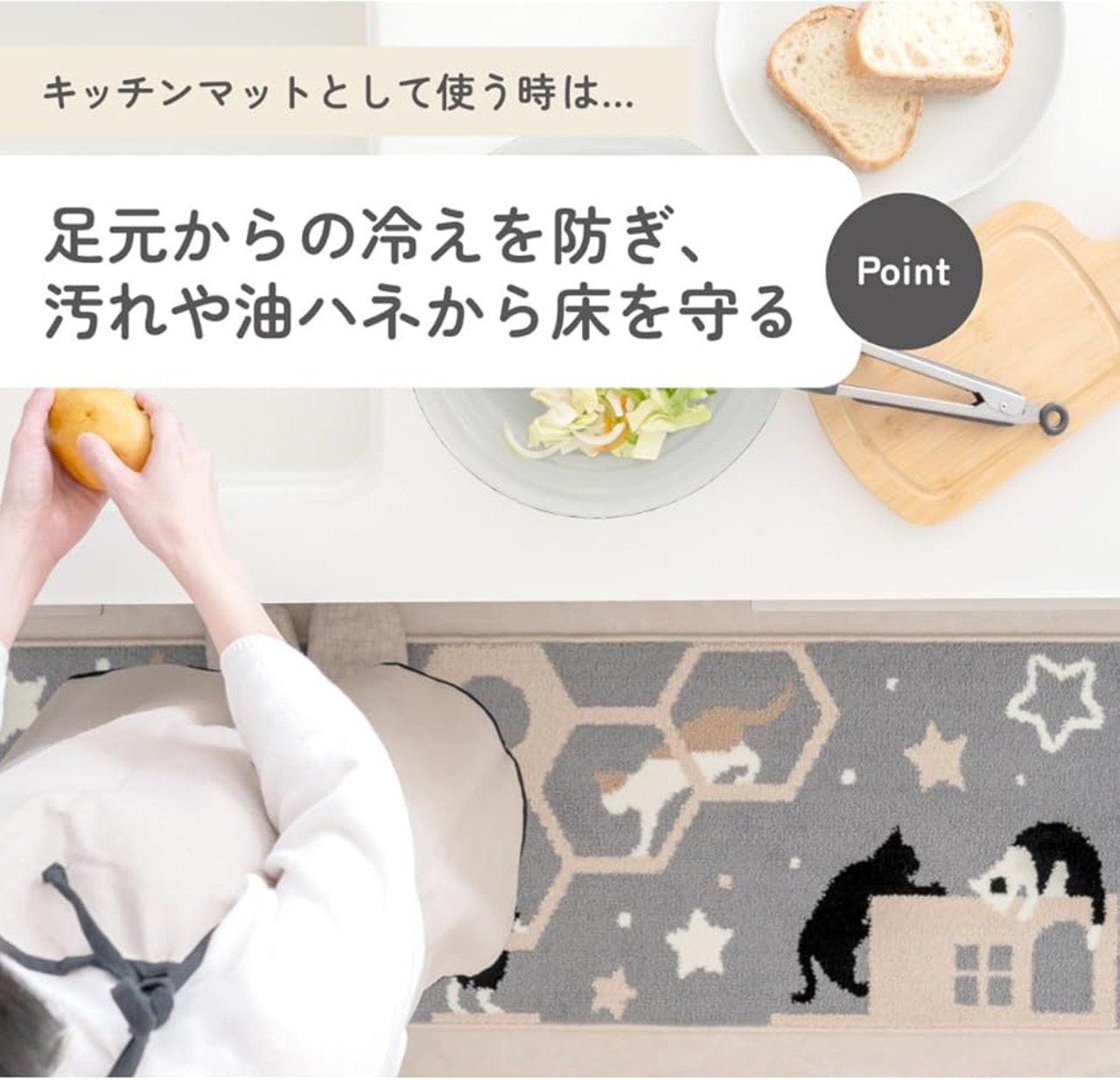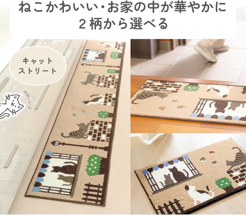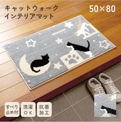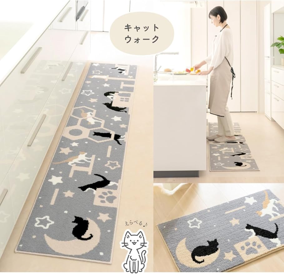 カキウチ マット インテリアマット 猫 幅80 奥行50 高さ1.3cm グレー キャットウォーク マルチマット 抗菌加工 ずれにくい 滑りにくい かわいい