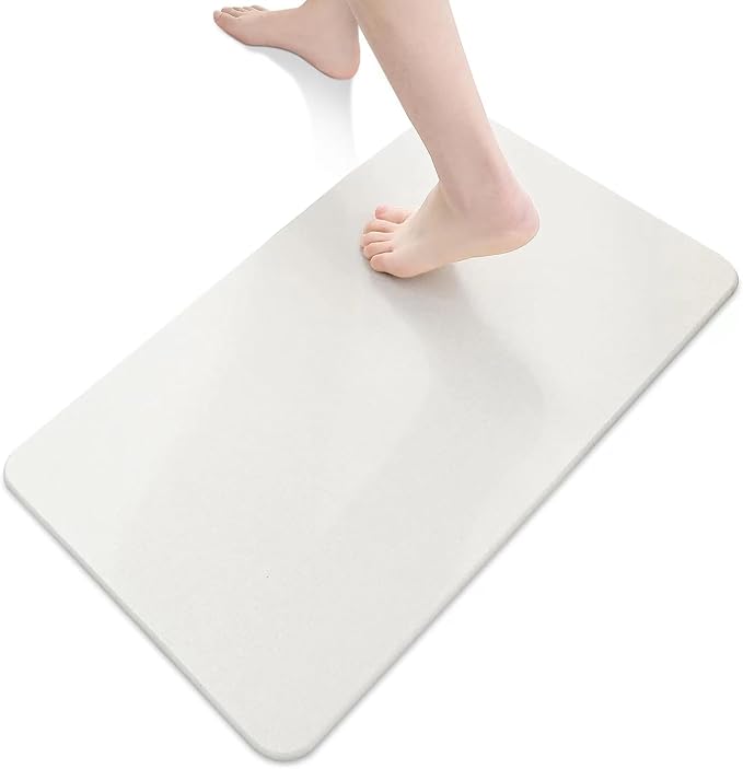 珪藻土 バスマット お風呂マット 足拭きマット 瞬間吸水 速乾 調湿 洗濯不要 アスベストゼロ 滑り止め 浴室 洗面所 キッチン 脱衣所 玄関(60*39*0.9cm、ホワイト)