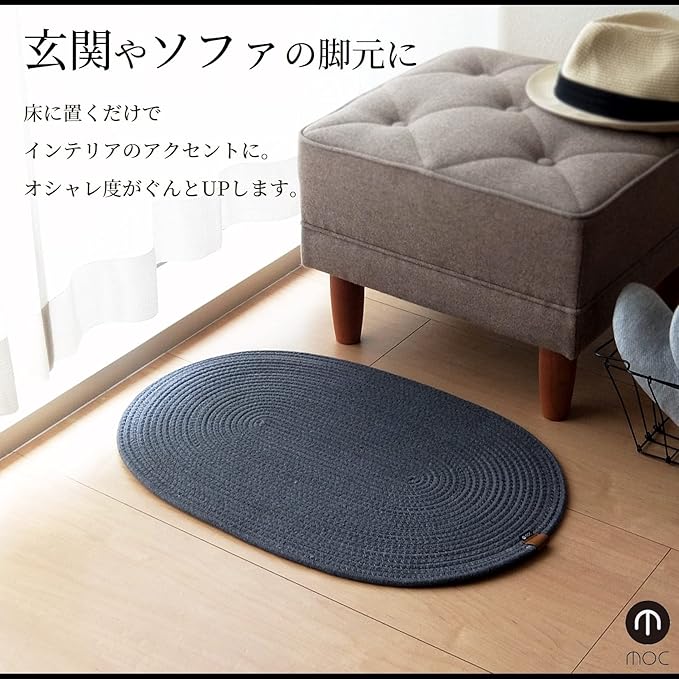 山善(YAMAZEN) マット (滑り止め付き) 玄関 室内 北欧 リビング 寝室 円形 60 40㎝ [MOC(モック) ロープインテリアマット] ダークグレー Y-MOC-RPIM-DGY
