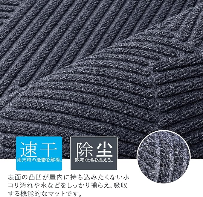 【機能性】表面の凸凹が屋内に持ち込みたくないホコリ汚れや水などをしっかり捕らえ、吸収する機能的なマットです。