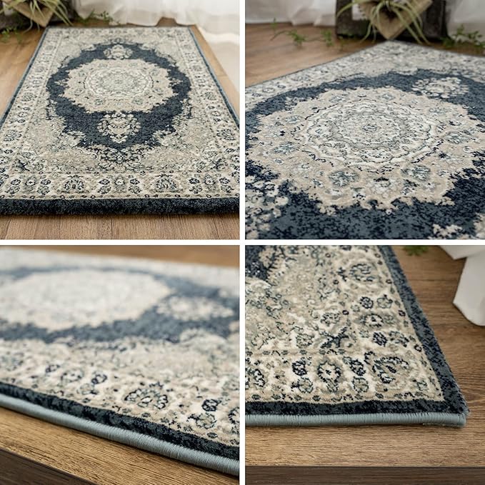 サヤンサヤン クラシック柄 玄関マット リープ メダリオン 室内 50 80 ブルー 75万ノット
