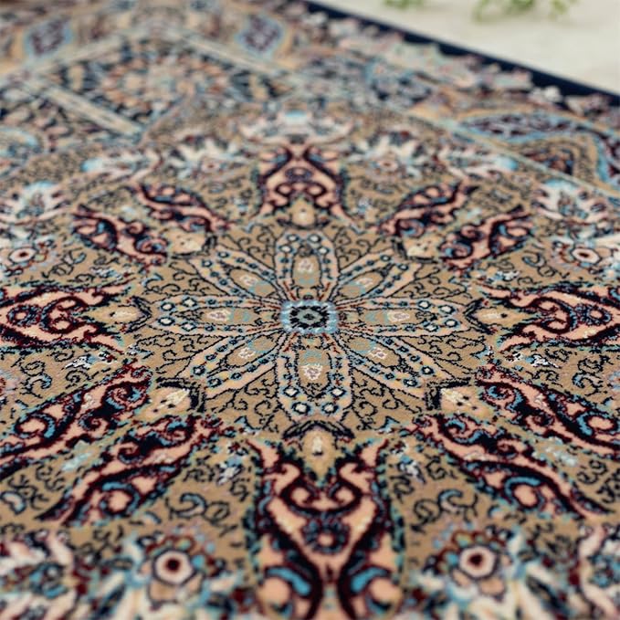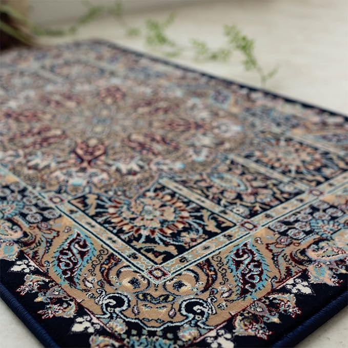 サヤンサヤン メダリオン ロイヤルタピス 玄関マット 60x90 cm ブルー エジプト ウィルトン