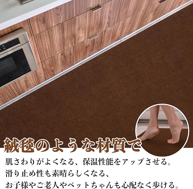【優れた機能性】★滑りとめ:表面4mm厚の高品質ポリエステルは滑りとめの性能をアップさせます、お子様やご高齢者のおられるご家庭でも安心です。★保温:適度な通気性と保温性があるため、寒いときフローリングや床の寒さと結露の心配もありません。★防音対策:防音性が優れており、お部屋の音も響きません。★床のキズ防止用にも役に立ちます。