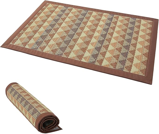 【仕様】サイズ:60x90cm;厚み:約10mm;色:ブラウン;表地:い草;中材:ウレタンフォーム;裏地:ポリエステル不織綿(滑り止め付き);縁:ポリエステル;織り方:紋織り;重量:0.9kg;備考:抗菌防カビ処理実施。