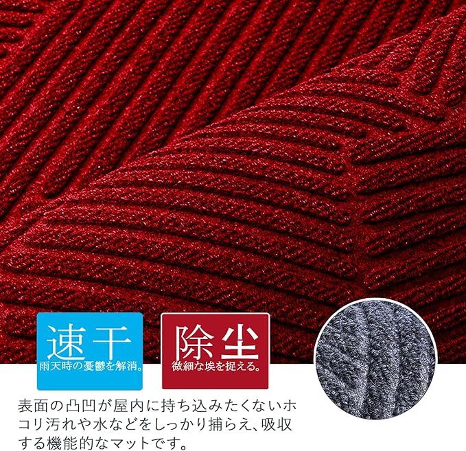 玄関マット ドアマット 泥落としマット 屋内 屋外 業務用 家庭用(40x60cm, レッド)