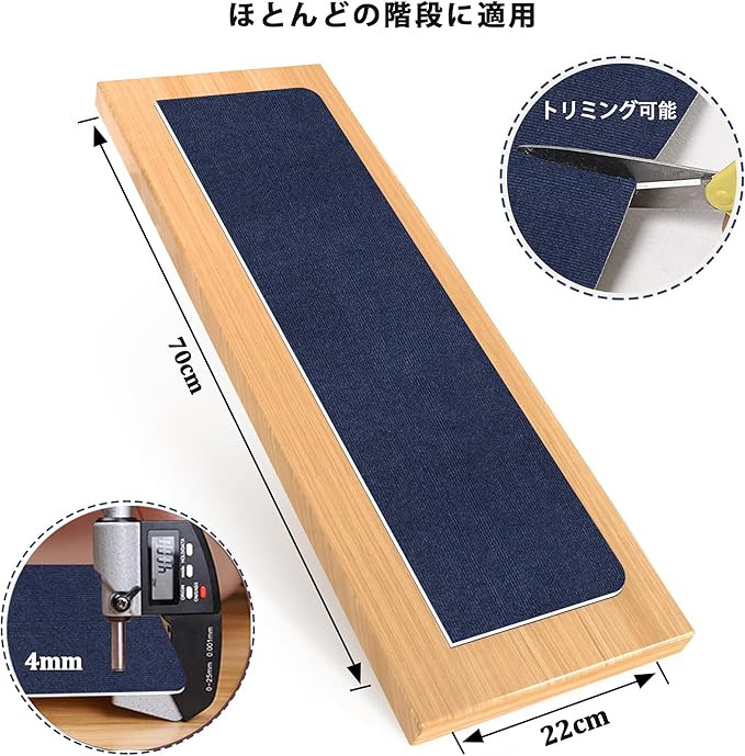 【Amazon 限定ブランド】XIWEIYI 階段マット 防音階段マット 猫犬階段滑り止めマット 簡単取り付け滑り止めマット 自由カット 四季通用階段敷き 吸着マット 足腰負担軽減 ズレない 階段クッション 転倒防止 キズ防止 70X22cm 【7枚入り】(ネイビーブルー)