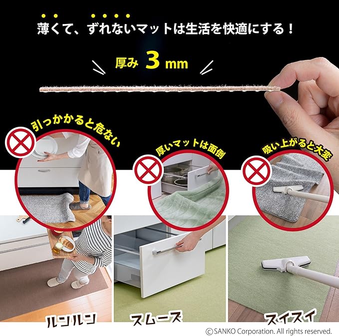 ●薄くて、ズレなく、つまずかないキッチン用マット