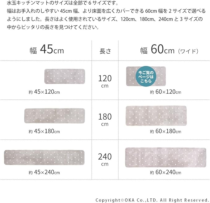 オカ 水玉2 キッチンマット 約60 120cm ベージュ
