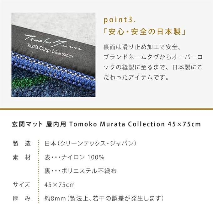 ウォッシャブルで丈夫、滑り止め仕様なので、玄関はもちろん、リビングや子供部屋から洗面所やキッチンなど水回りまで、ご家庭の様々な場面でお使い頂けます。