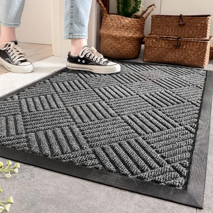 玄関マット 屋外 滑り止め 泥落としマット ドアマット カーペット 耐磨耗性 マット シンプル 業務用 家庭用 お手入れ簡単(グレー・60*90cm)