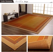 現代のライフスタイルに合う、洗練されたモダンなデザインのい草カーペットです。国産(九州産)のい草を使用しています。一本一本が太く、表皮が厚く繊維がキメ細かいので弾力性があり、耐久性に優れています。い草には空気の自然浄化作用、湿度の調節作用などがあります。い草に青森ヒバ加工を施しています。(抗菌、防臭効果)