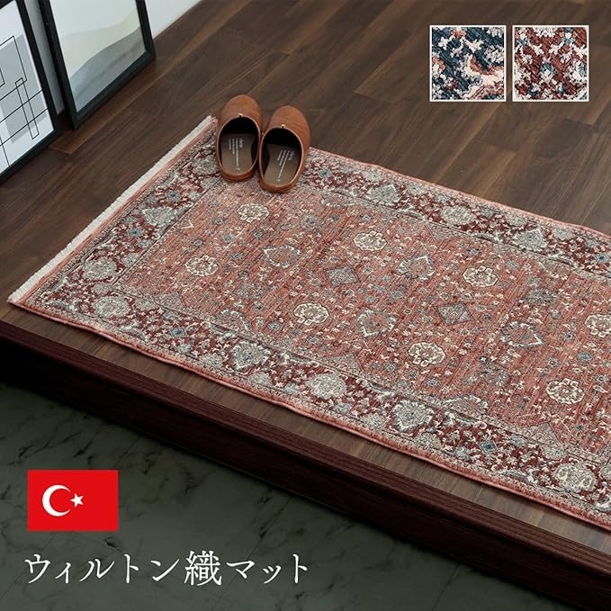 【商品紹介】クラシック柄のウィルトンマットです。伸縮性のある糸を使用することで、立体感を持たせました。ウィルトンは家の中でも靴を履いて生活するヨーロッパで、土足で扱うことを前提として作られております。そのため、耐久性に優れており、長時間踏みつけてもヘタりにくく、弾力性もあり長くご使用頂けます。