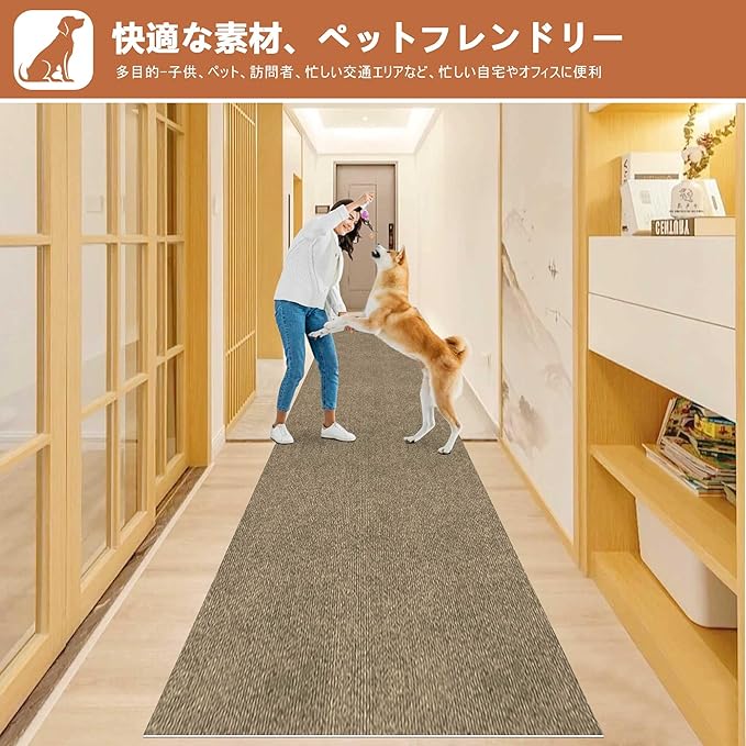 滑り止めと安全保障:表面は滑り止め加工が施されており、ペット、子供、高齢者が廊下や階段で滑って転倒する危険を大幅に低減できます。足の裏とマットの底との摩擦を効果的に減らし、家の木製の床を確実に保護できます。そのため、ペット、介護が必要な人、子供がいる家庭でも安心して使用できます。