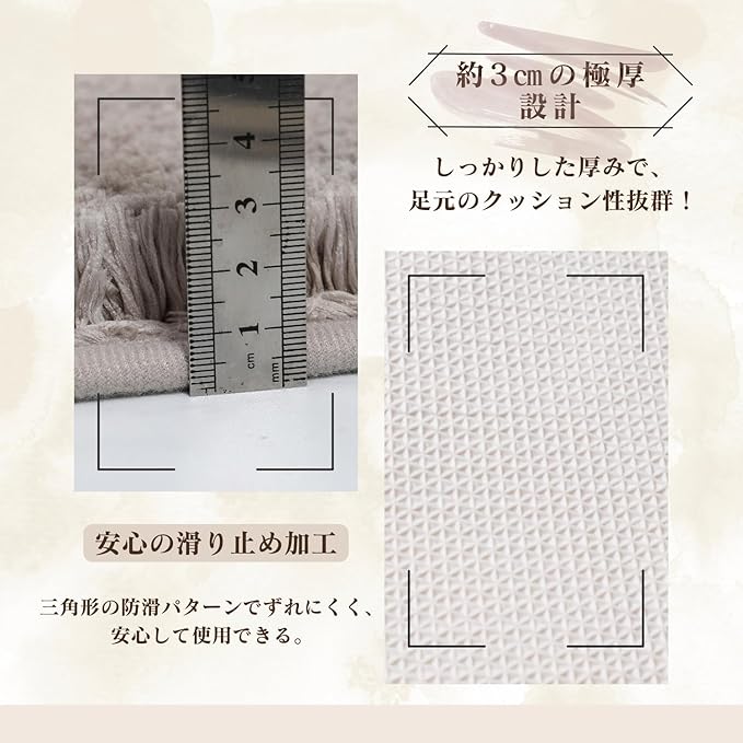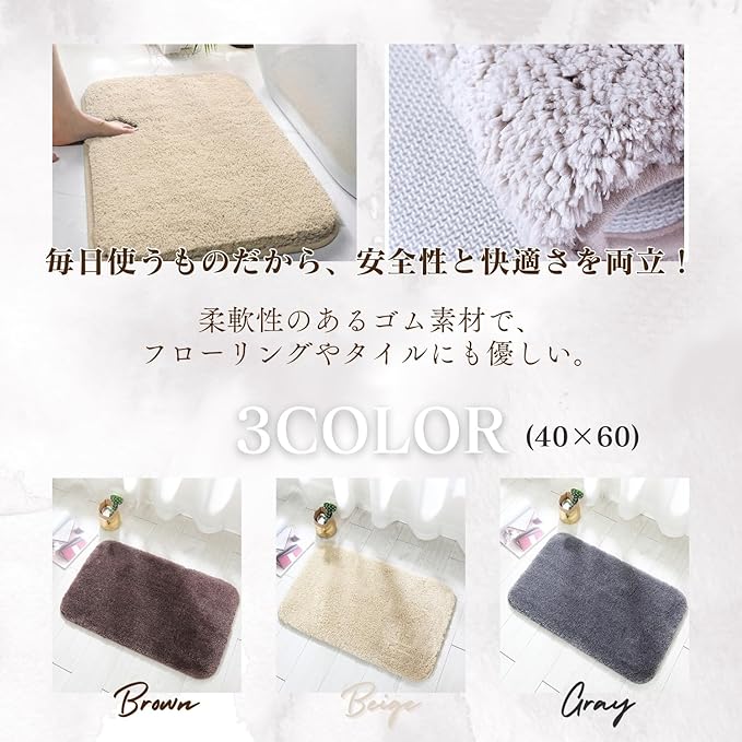 【ふわふわの心地よい肌触り】マイクロファイバー素材を使用したバスマットは、柔らかな肌触りと濃密な長毛で、足を包み込むような踏み心地を実現。お風呂上がりのリラックスタイムに最適です。