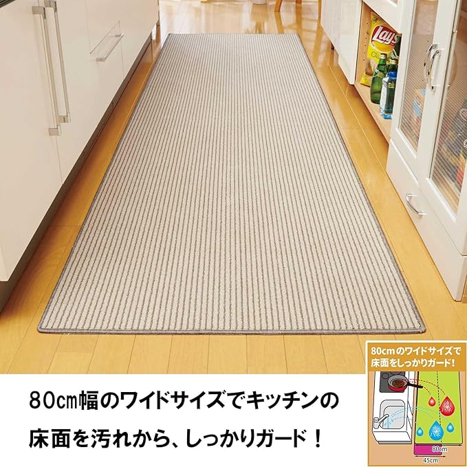 平津産業(Hiratsu Sangyo) メガマット ストライプ キッチン用 80 240㎝ 日本製 洗える 洗濯 滑り止め ずれにくい フロア シート ロング おしゃれ 足元 台所 フローリング ダイニング 大きめ 床 92074600