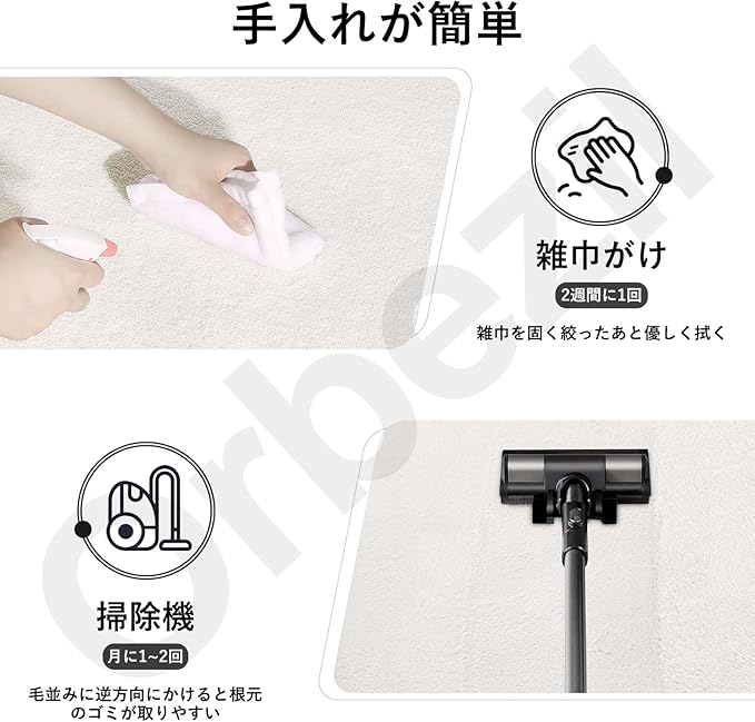 【簡単お手入れ】掃除機や洗濯機(洗濯ネットの使用をお勧め)で簡単に清潔を保てます。軽量型のラグマットなので、女性でも簡単に持ち運びでき、洗濯や取り替え、収納も気軽にできます。夏用の冷房対策、冬は床暖房・ホットカーペット対応。