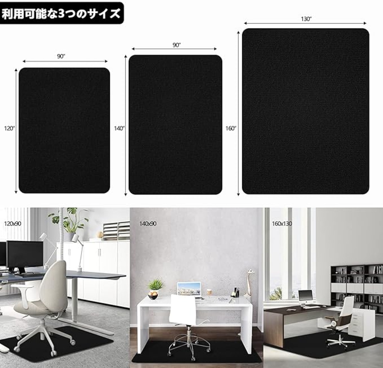 床保護マットチェアマット 床傷防止マットパッド PVC デスクカーペット Hriiiiya ブラック 120 90cm キズ 凹み防止厚さ4 mm セルフ粘着 床のキズ防止 ラグ フロア ゲーミングマット 抗菌 防カビ