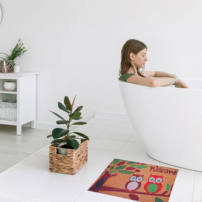 DECHOUS 玄関マット チェアマット 室内 マット 滑り止め キッチンマット フクロウ柄 おしゃれ 耐磨耗 防臭 汚れ防止 洗面所 バスルーム キッチン 屋外用 洗える 45*75cm