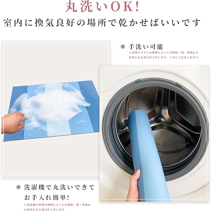 【お手入れ簡単】 なんと洗濯機で丸洗いOK!毎日のお手入れも簡単でストレスフリーで衛生的!汚れが付着した場合もさっと水洗いするだけで十分。正し使えば、珪藻土バスマットの寿命も延び、長く使えます。 (ご注意: 洗濯機の乾燥機能は使用しないでください)
