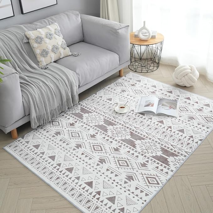 カーペット ラグ マット ペルシャ風 絨毯風 花柄 オールシーズン適用 ボヘミアン柄 滑り止め付き 寝室 リビング 玄関マット 地毯 じゅうたん 洗える 防音マット 防ダニ 防臭 (柄D, 90 150cm)
