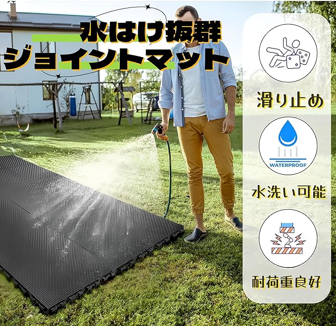 水はけマット ベランダ 屋外 タイル 滑り止め フリーカット可能 水はけ ジョイントマット 玄関 バルコニー テラス 学校 通路 洗える はめ込み式 工具不要 軽量 耐候性 ブラック