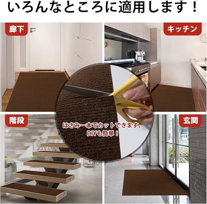 4、【素敵な色、DIYも可能】ブラウンはいろんなスタイルのおうちに合う、素敵なおうちをもっと優雅、上品になれる!マットは好きなサイズにカットできます、ハサミ一本で簡単にできます!ほかに600*60cmの選択肢もございますので、お好きなサイズを選んでください。