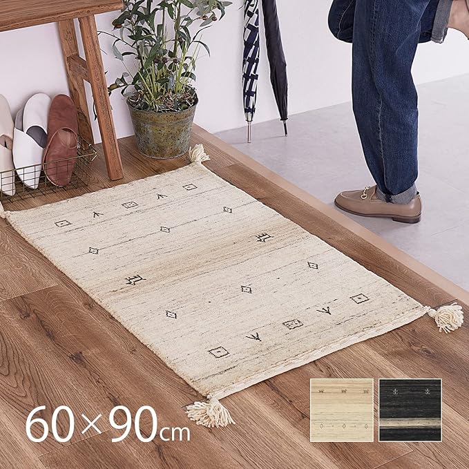 萩原 ギャッベ 玄関マット 屋内 約60X90cm 「LORRI BUFF L17」 無染色ウール 自然の恵みをそのままに なめらか ソフトタッチ