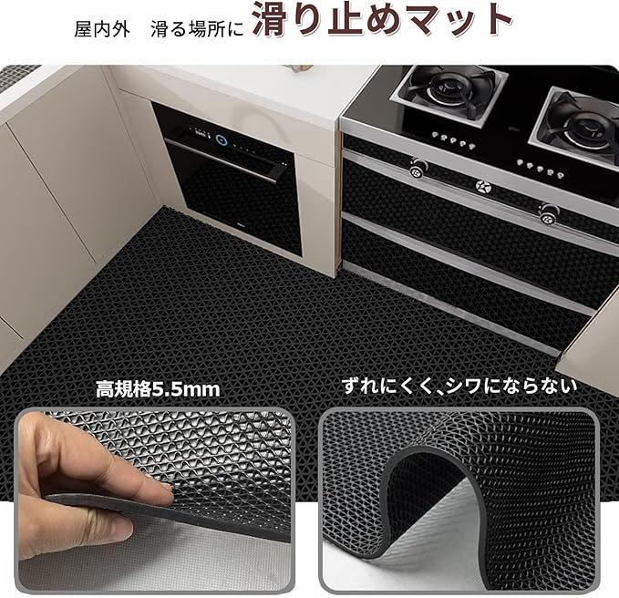 滑り止めマット 屋外 黒 90cm 1m 高規格5.5mm厚 強化型 耐久性アップ PVC ゴムマット 玄関 洗い場 浴室 屋内 転倒防止 業務用 介護施設 歩行 通路 風呂 浴室 駐車場 ベランダ